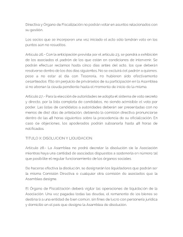 Directiva y Órgano de Fiscalización no podrán votar en asuntos relacionados con