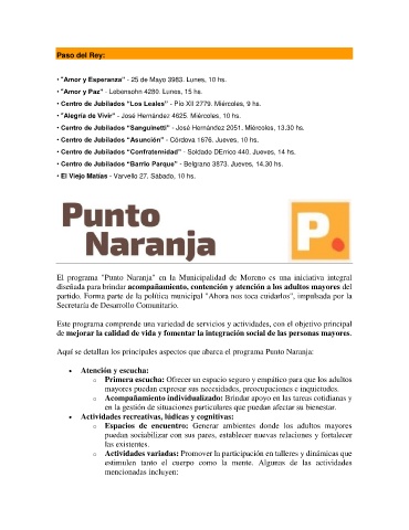 Aquí se detallan los principales aspectos que abarca el programa Punto Naranja: