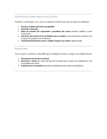 Cuando te comuniques, ten a mano la siguiente información sobre tu centro de jubilados: