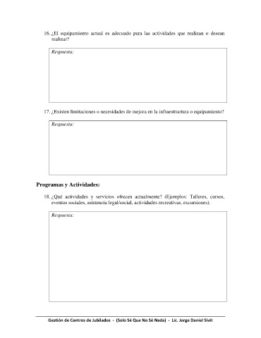 16. ¿El equipamiento actual es adecuado para las actividades que realizan o desean