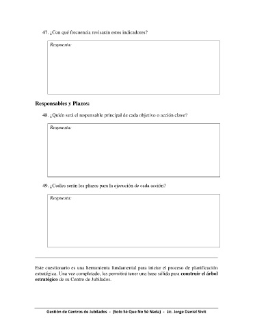 48. ¿Quién será el responsable principal de cada objetivo o acción clave?