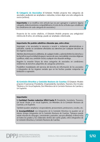 5) Categoría de Asociados: El Estatuto Modelo propone tres categorías de