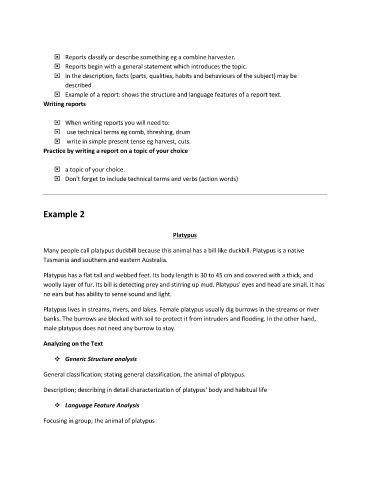 Example of a report: shows the structure and language features of a report text.
