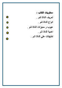 : باتكلا تايوتحم . وش اتادلا فيرعت . وش اتادلا عاونا . وش اتادلا تازيمم و بويع . وش اتادلا ةيمها . وش اتادلا يلع تاقيبطت