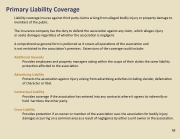 Provides protec on if an owner or member of the associa on sues the associa on for bodily injury damages occurring on a common area as a result of negligence by either a unit owner or the associa on.