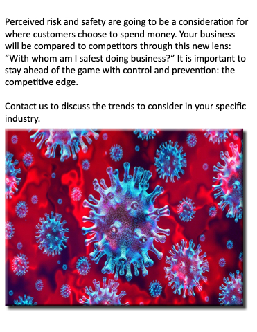 Perceived risk and safety are going to to to be a a a a a consideration for where customers choose to to to to to spend money Your business will be compared to to to to competitors through this new lens: “With whom am am I I safest doing business?” It is is important to to to stay ahead of the the game with control and prevention: the the competitive edge Contact us us us to to discuss the trends to to consider in in your specific industry