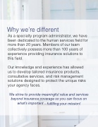 As a specialty program administrator, we have been dedicated to the human services eld for more than 20 years. Members of our team collectively possess more than 100 years of experience providing insurance solutions to this eld.