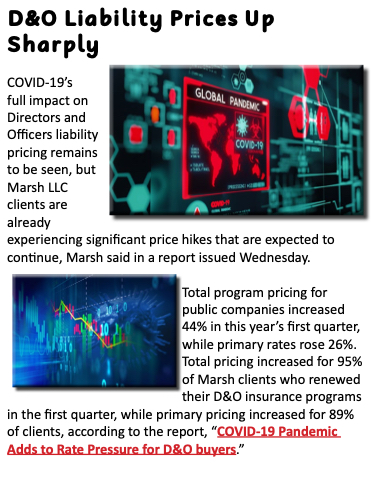 in in in in in the the the first quarter while primary pricing increased for 89% of clients according to to the the report “COVID-19 Pandemic Adds to to Rate Pressure for D&O buyers ”