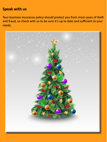 Speak with us Your business insurance policy should protect you you from most cases of theft and and fraud so check with us us to to to be sure it’s up to to to date and and sufficient to to to your needs