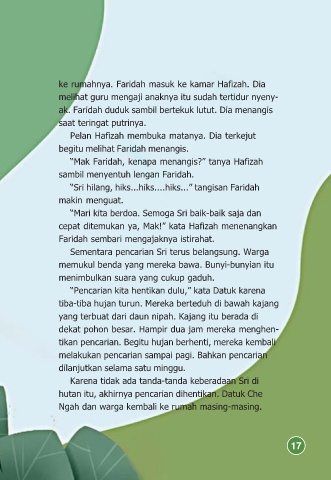 “Sri hilang, hiks...hiks....hiks...” tangisan Faridah