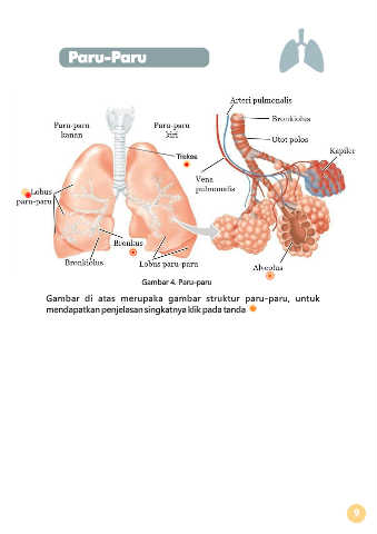 Paru-Paru Trakea Gambar 4. Paru-paru Gambar di atas merupaka gambar struktur paru-paru, untuk mendapatkan penjelasan singkatnya klik pada tanda 9
