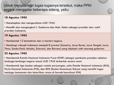 Untuk menjalankan tugas-tugasnya tersebut, maka PPKI