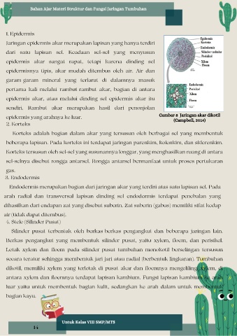 Jaringan epidermis akar merupakan lapisan yang hanya terdiri