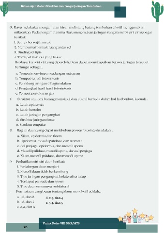 8. Bagian daun yang dapat melakukan proses fotosintesis adalah...