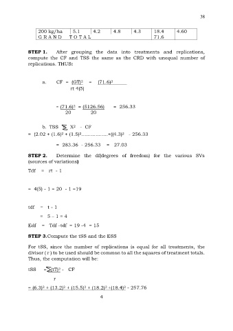 STEP 1. After grouping the data into treatments and replications,