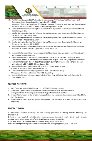 31. Speaker during the Seminar Workshop on Library Management and Organization held at Mayoyao