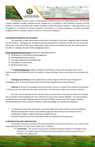 In indexing, one must determine the scope of the index. The IFSU Library follows the selective indexing.