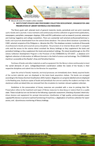 INSTITUTION’S POLICIES AND PROCEDURES COLLECTION DEVELOPMENT, ORGANIZATION AND
