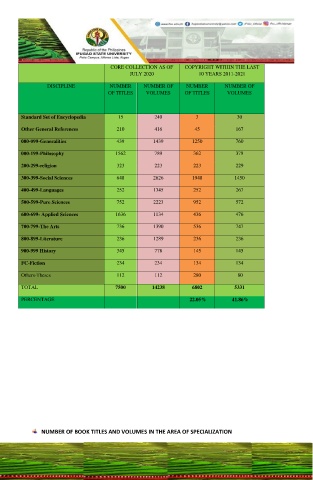 NUMBER OF BOOK TITLES AND VOLUMES IN THE AREA OF SPECIALIZATION