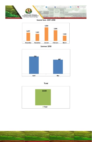 Second Sem. 2017-2018 3,684 2,896 2,251 1,921 1,432 November December January February March Summer 2018 539 441 April May Total 26,994 Total