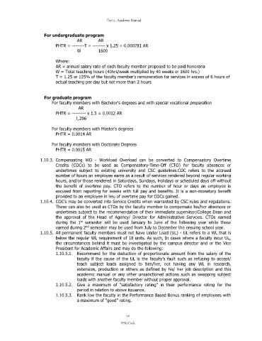 undertimes subject to existing university and CSC guidelines.COC refers to the accrued