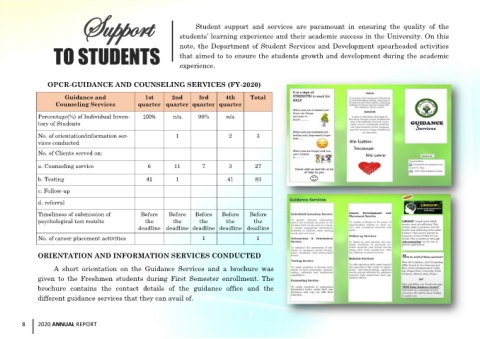 TO STUDENTS note, the Department of Student Services and Development spearheaded activities