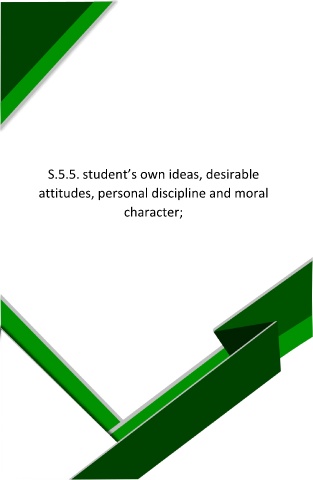 S.5.5. student’s own ideas, desirable attitudes, personal discipline and moral character;