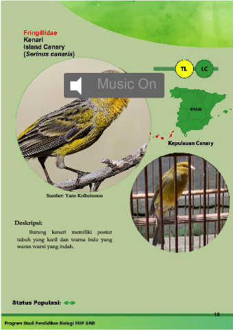 Sumber: Yann Kolbeinsson Deskripsi: Burung kenari memiliki postur tubuh yang kecil dan warna bulu yang waran warni yang indah. 16 V22VI