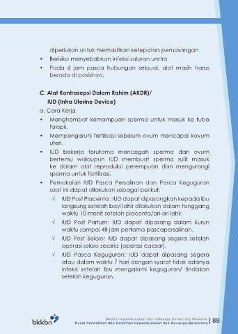 √ IUD Post Partum: IUD dapat dipasang dalam kurun