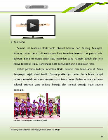 Penyengat sejak abad ke-18. Dalam prakteknya, tarian Boria biasa tampil