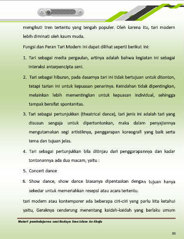 mengikuti tren tertentu yang tengah populer. Oleh karena itu, tari modern