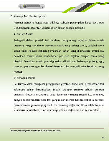 Untuk Konsep dasar tari kontemporer adalah sebagai berikut :