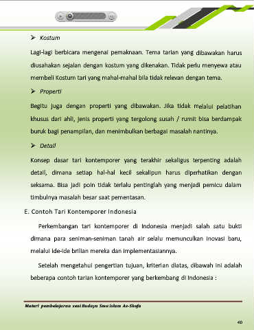 membeli Kostum tari yang mahal-mahal bila tidak relevan dengan tema.