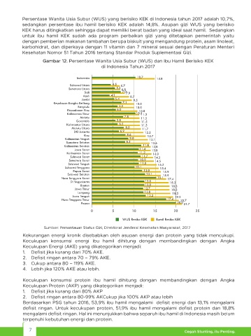 sedangkan persentase ibu hamil berisiko KEK adalah 14,8%. Asupan gizi WUS yang berisiko