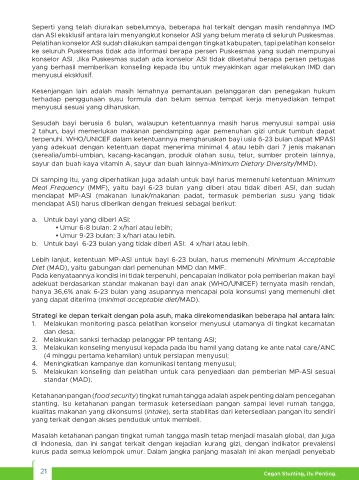 terpenuhi. WHO/UNICEF dalam ketentuannya mengharuskan bayi usia 6-23 bulan dapat MPASI