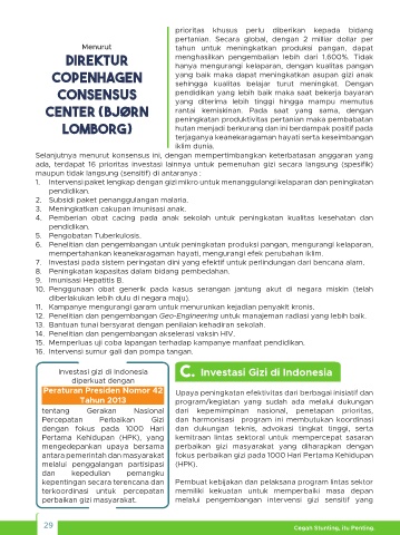 ada, terdapat 16 prioritas investasi lainnya untuk pemenuhan gizi secara langsung (spesifik)