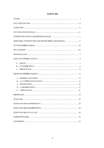 KERANGKA HANDOUT BIOLOGI SISTEM SRIKULASI MANUSIA ............................. vi