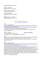 Esercizi di memoria di Anna dalla Costa Manzano – Scuola Media Ragazzi in volo di Alessandro Pesaola Percoto UD – Scuola elementare Il purcit di Sant’Antoni di Giacomo Vit Pradamano – Biblioteca Dentro Gerico poesia di Pierluigi Cappello 2002 Villanova del Judrio – ex elementari Rapiti da un sogno di Alessandro Pesaola Letture sceniche – Reading di poesia 2009 Cormòns – piazza XXIV maggio Le giornate della poesia e del vino Festival Internazionale di poesia, progetto della Comunità Europea, in collaborazione con Slovenia, Slovacchia e Svezia Con Giuseppe Mariuz, Roberto Marino Masini, Vincenzo della Mea, Michele Obit, Fabiano Alborghetti Con Walter Benussi al sax e Francesco Gavosto alla batteria/percussioni A seguire concerto Jazz con la fisarmonica di Marsell Marsinek (Slovenia), che precede quello con il pianoforte di Glauco Venier Manzano, villa Romano produzione Culturaglobale lettura scenica dell’attore Omero Antonutti accompagnato dal violino dell’artista giapponese Mariko Masuda 2008 Alla Taberna nel contesto di Cormònslibri 2008 – Francesco Tomada presentato dal Giovanni Fierro legge dal suo ultimo libro, assieme ad Antonella Bucovaz, con Paolo Pascolo al Sax e flauto Cormònlibri 2008 – omaggio a Maria Pia Pavani legge Arianna La Notte e Raffaele Lazzara accompagnata dall’arpa di Silvia Vicario 2008 Cormòns – piazza XXIV maggio Le giornate della poesia e del vino Festival Internazionale di poesia, progetto della Comunità Europea, in collaborazione con Slovenia, Slovacchia e Svezia. Con Luciano Morandini, Maurizio Mattiuzza, Marina Moretti e Ivan Crico. Alla presenza dei poeti: Pelin Batu (Turchia), Dan Coman (Romania), Milan Dezinski (Cechia), Forrest Gander (USA), Lars Gustafsson (Svezia), Rumen Leonidov (Bulgaria), Guillauem Metayer (Francia), Luciano Morandini (Italia), Paul Muldoon (Irlanda), Víctor Rodríguez Núñez (Cuba), Brane Oblucar (Croazia), Roland Orcsik (Ungheria), Ana Pepelnik (Slovenia), Marcello Potocco (Slovenia), Marcello Potocco (Slovenia), Daniel Salgado (Galizia, Spagna), Ivar Sild (Estonia), Agnieszka Syska (Polonia), Zoë Skoulding (Gran Bretagna), L’ubica Somolayová (Slovacchia), Matthew Sweeny (Irlanda), Jovanka Uljarevic (Montenegro), Andreas Unterweger (Austria), Jordi Valls Pozo (Catalogna, Spagna), Jan Wagner (Germania), Sergij Žadan (Ucraina) Farra d’Isonzo – Giardino museo del territorio Incontro con la poesia dialettale regionale
