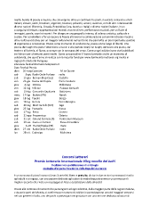 realtà. Serate di poesia e musica, che coinvolgono oltre un centinaio tra poeti, musicisti, cantanti e artisti italiani, sloveni, cechi, brasiliani, argentini, bosniaci, polacchi, ucraini, austriaci, e molti altri. Interessando diverse nazioni (Slovenia, Croazia, Repubblica Ceca, Austria e Italia) e diverse regioni italiane, in un susseguirsi di letture, rappresentazioni teatrali, mostre d’Arte, performance musicali, per un fluire di immagini, parole, suoni e incontri. Per disegnare una geografia intensa, di valenza artistica, culturale e sociale. Per condividere e far conoscere la Poesia attraverso la collaborazione con amministrazioni locali e altre realtà associative, per un maggior radicamento nel territorio che permette un più importante scambio di esperienze e conoscenze. Poesia come momento di condivisione, poesia come luogo di libertà. Una poesia dei luoghi che pone l’attenzione ai suoni e alle parlate locali; nei luoghi, dal bosco alla piazza, dal teatro o all’osteria, al fiume, ovunque con la carovana del verso. Come a ogni edizioni sono stati pubblicati tre libricini per altrettanti poeti inediti. Come consuetudine il Festival prevede anche un momento di solidarietà, che quest’anno si realizza con la raccolta fondi per www.funimainternational.org rivolta ai ragazzi di strada del Paraguay. sito www.festivalinternazionalepoesia.it Date Festival Poesia dom 26-mag Cormòns M. te Quarin sab 8-giu Radio Onde Furlane radio sab 15-giu Beroun (Rep Ceca) Castello ven 21-giu Reana del Rojale Parco Sculture giov 4-lug Gorizia Biblioteca ven 12-lug Villesse Palazzo Gersiach sab 13-lug Concordia Sagittaria Battistero merc 17-lug Budoia (PN) Ranch giov 18-lug Topolò Borgo ven 19-lug Gorizia Parco Basaglia sab 20-lug Most na Soči (SLO) lago giov 25-lug Pozzuolo frasca sab 27-lug Resia Osteria sab 31-ago Prossenicco Osteria sab 21-set Gmund Carinzia (A) Pankratium Museum sab 28-set Cavazzo Carnico Pieve di Cesclans giov 3-ott Fiume/Rijeka (HR) mare dom 27-ott Radio Onde Furlane radio lun 28-ott Codroipo Biblioteca Concorsi Letterari Premio Letterario Internazionale Vileg novella dal Judri 8 edizioni con pubblicazione di antologia medaglia d’argento Presidente della Repubblica Ciampi è un concorso di piccoli racconti (max 3 cartelle) libero e gratuito, diviso in due sezioni con racconti rivolto agli adulti e ai ragazzi, con una sezione dedicata agli autori di madrelingua straniera e un premio per li miglior racconto che rivela un messaggio di Pace e accettazione delle diversità Grazie alle centinaia di racconti che pervengono ad ogni edizione, dalla maggior parte delle regioni italiane, e da varie parti del Mondo, si conferma per numero di edizioni e partecipazione uno dei maggiori concorsi nel suo genere in Italia, uno dei pochi a partecipazione gratuita e con una sezione dedicata ad autori di