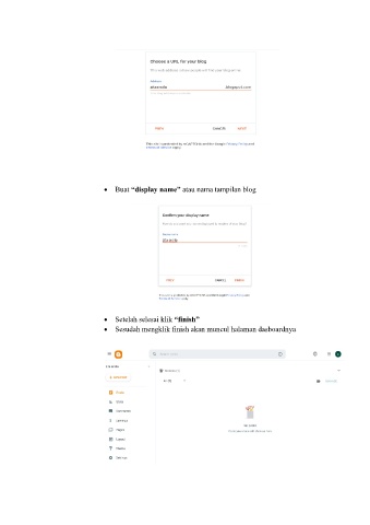 • Buat “display name” atau nama tampilan blog • Setelah selesai klik “finish” • Sesudah mengklik finish akan muncul halaman dasboardnya
