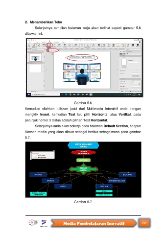 mengklik Insert, kemudian Text lalu pilih Horizontal atau Vertikal, pada