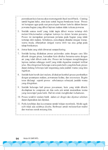 malam/lilin,kemudian celupkan kainnya ke dalam larutan pewarna.