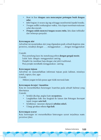 Adverbial ini menjelaskan alat yang digunakan pada sebuah kegiatan atau