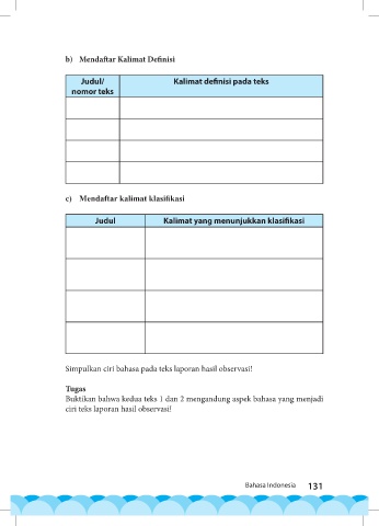 Simpulkan ciri bahasa pada teks laporan hasil observasi!