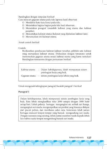 Gagasan utama : sistem pembagian kerja lebah yang baik.