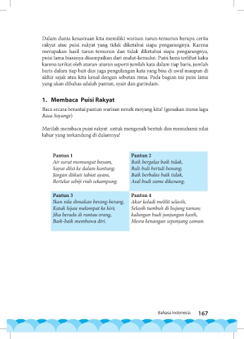 Marilah membaca puisi rakyat untuk mengenali bentuk dan memahami nilai
