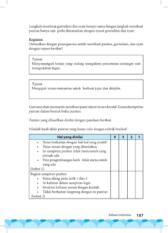 Nilailah hasil akhir pantun yang kamu tulis dengan rubrik berikut!