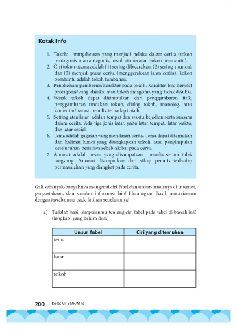 a) Tulislah hasil simpulanmu tentang ciri fabel pada tabel di bawah ini!