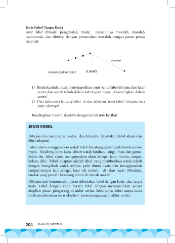 Alur fabel dimulai pengenalan, mulai munculnya masalah, masalah