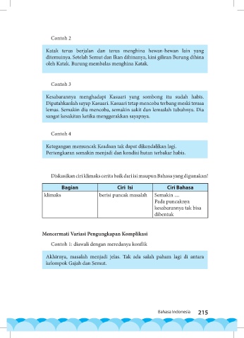 Diskusikan ciri klimaks cerita baik dari isi maupun Bahasa yang digunakan!